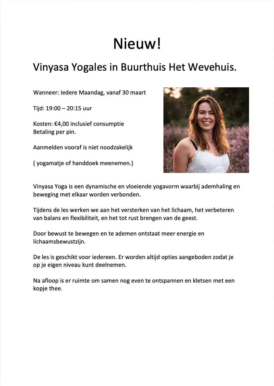 Vinyasa Yogales in Buurthuis Het Wevehuis